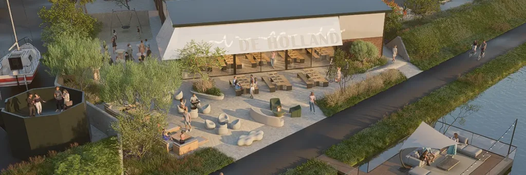 De Holland ontwikkelt zich stap voor stap. Met elke ingreep wordt gekeken wat past bij de plek, het gebruik en de omgeving. De beelden op deze pagina laten zien welke richting we onderzoeken.